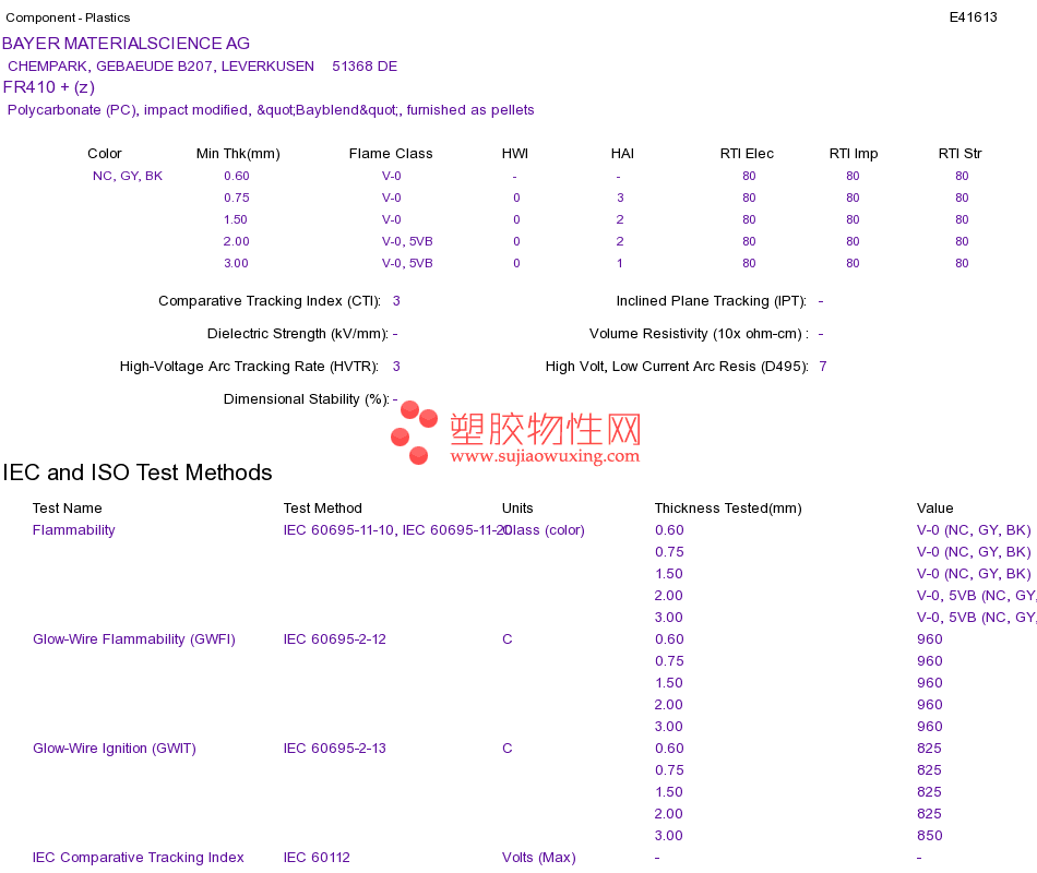 Polycarbonate (PC) FR410 + (z)UL黄卡资料请登陆会员后查看,如需电子档资料,请联系客服! 赵生:手机13424755533;QQ:27660005