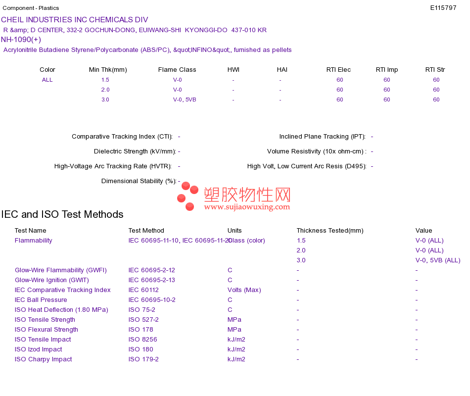 Acrylonitrile Butadiene Styrene/Polycarbonate (ABS/PC) NH-1090(+)UL黄卡资料请登陆会员后查看,如需电子档资料,请联系客服! 赵生:手机13424755533;QQ:27660005