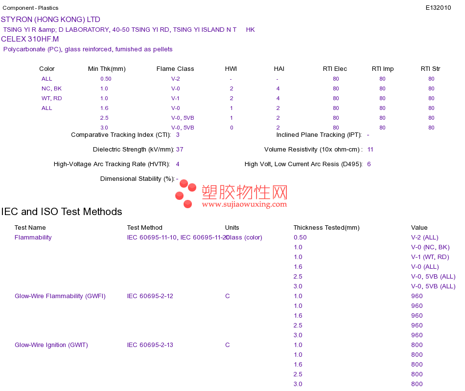 Polycarbonate (PC) CELEX 310HF.MUL黄卡资料请登陆会员后查看,如需电子档资料,请联系客服! 赵生:手机13424755533;QQ:27660005