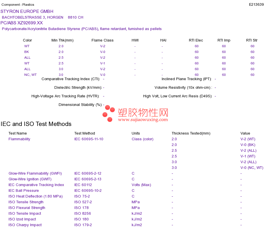 Polycarbonate/Acrylonitrile Butadiene Styrene (PC/ABS) PC/ABS XZ92699.XXUL黄卡资料请登陆会员后查看,如需电子档资料,请联系客服! 赵生:手机13424755533;QQ:27660005