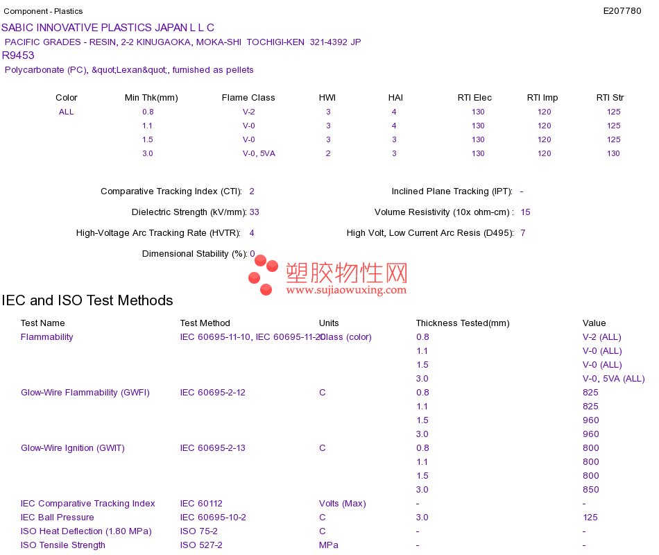 Polycarbonate (PC) R9453UL黄卡资料请登陆会员后查看,如需电子档资料,请联系客服! 赵生:手机13424755533;QQ:27660005