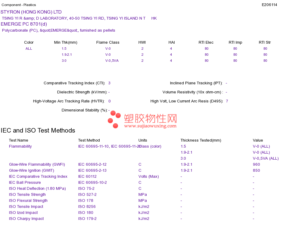 Polycarbonate (PC) EMERGE PC 8701(d)UL黄卡资料请登陆会员后查看,如需电子档资料,请联系客服! 赵生:手机13424755533;QQ:27660005