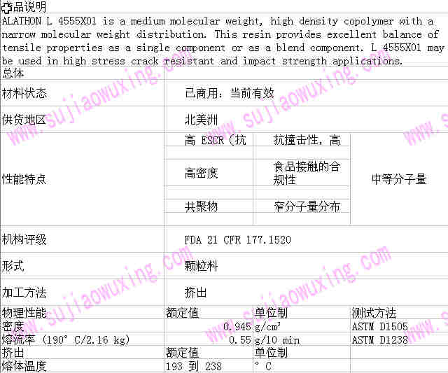 如需了解Alathon PA66-6 L4555X01物性表更多详情,ROHS(SGS)报告、物质安全资料表(MSDS)、材质证明、UL黄卡等,最新行情报价等可来电咨询:袁小姐13266047972 QQ:767320520