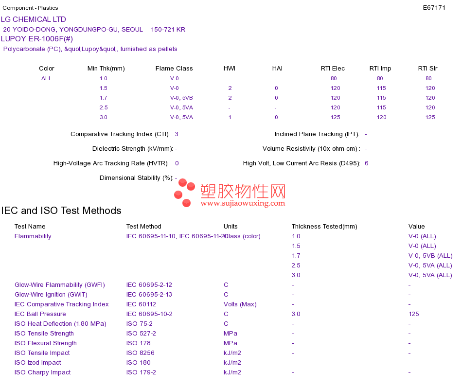Polycarbonate (PC) LUPOY ER-1006F(#)UL黄卡资料请登陆会员后查看,如需电子档资料,请联系客服! 赵生:手机13424755533;QQ:27660005
