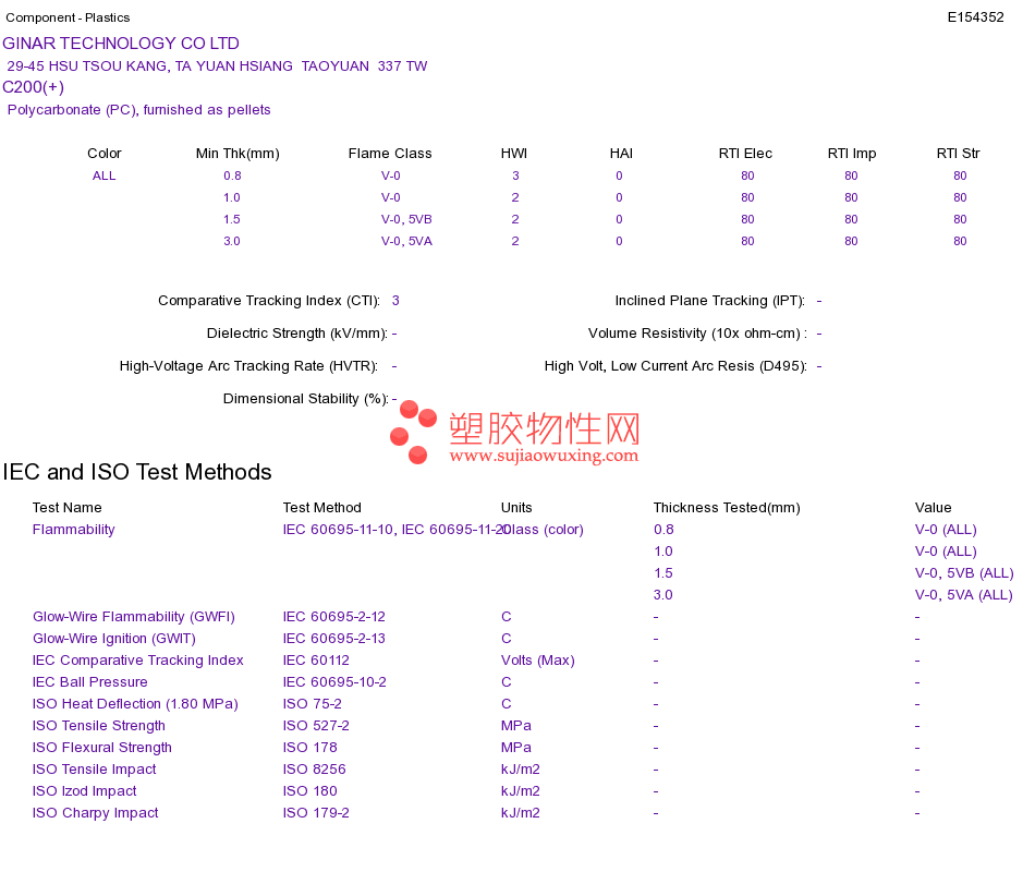 Polycarbonate (PC) C200(+)UL黄卡资料请登陆会员后查看,如需电子档资料,请联系客服! 赵生:手机13424755533;QQ:27660005