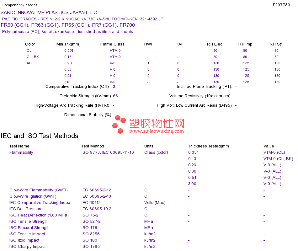 Polycarbonate (PC) FR60 (GG1), FR63 (GG1), FR65 (GG1), FR7 (GG1), FR700UL黄卡资料请登陆会员后查看,如需电子档资料,请联系客服! 赵生:手机13424755533;QQ:27660005