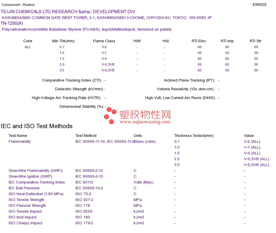 Polycarbonate/Acrylonitrile Butadiene Styrene (PC/ABS) TN-7295(#)UL黄卡资料请登陆会员后查看,如需电子档资料,请联系客服! 赵生:手机13424755533;QQ:27660005