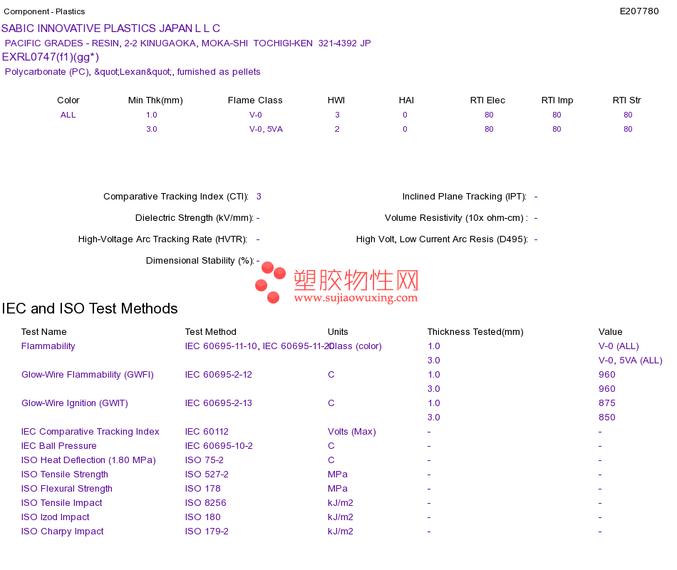 Polycarbonate (PC) EXRL0747(f1)(gg*)UL黄卡资料请登陆会员后查看,如需电子档资料,请联系客服! 赵生:手机13424755533;QQ:27660005
