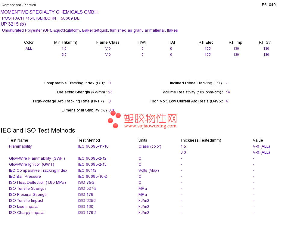 Unsaturated Polyester (UP) UP 3215 (b)UL黄卡资料请登陆会员后查看,如需电子档资料,请联系客服! 赵生:手机13424755533;QQ:27660005