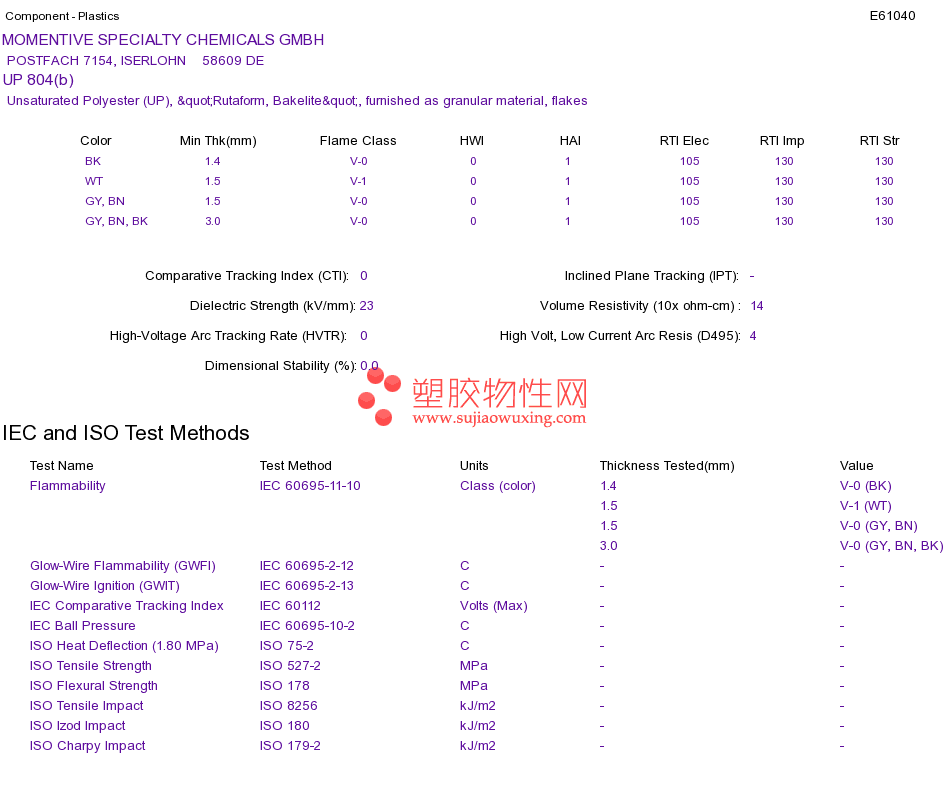 Unsaturated Polyester (UP) UP 804(b)UL黄卡资料请登陆会员后查看,如需电子档资料,请联系客服! 赵生:手机13424755533;QQ:27660005