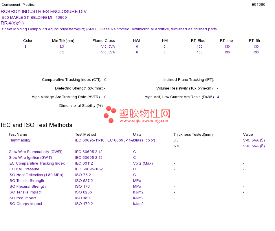 Sheet Molding Compound "Polyester" (SMC) RR-4(x)(f1)UL黄卡资料请登陆会员后查看,如需电子档资料,请联系客服! 赵生:手机13424755533;QQ:27660005