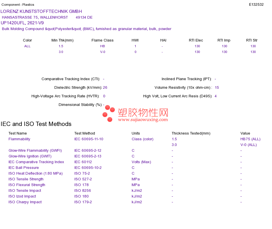 Bulk Molding Compound "Polyester" (BMC) UP1420UFL, 2621-V9UL黄卡资料请登陆会员后查看,如需电子档资料,请联系客服! 赵生:手机13424755533;QQ:27660005
