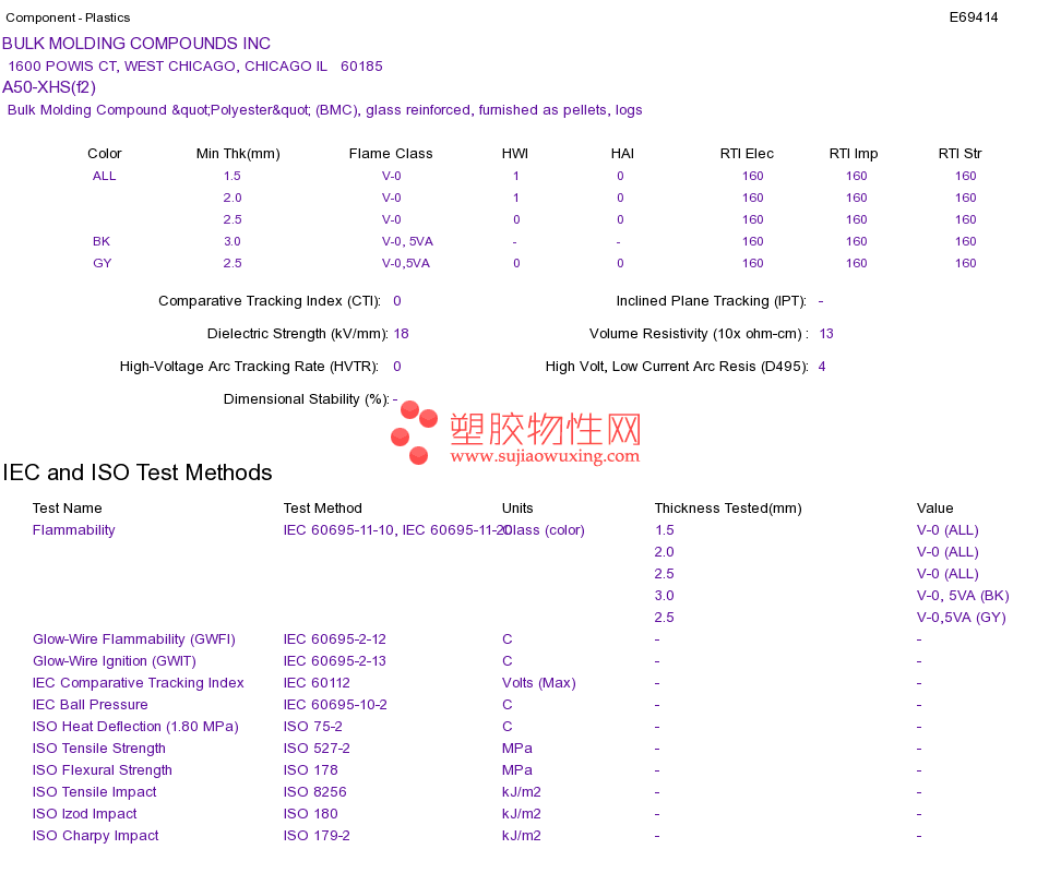 Bulk Molding Compound "Polyester" (BMC) A50-XHS(f2)UL黄卡资料请登陆会员后查看,如需电子档资料,请联系客服! 赵生:手机13424755533;QQ:27660005