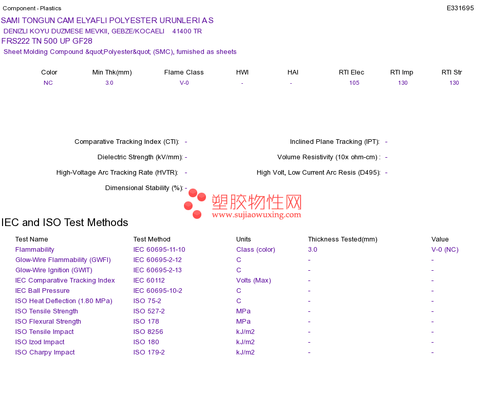 Sheet Molding Compound "Polyester" (SMC) FRS222 TN 500 UP GF28UL黄卡资料请登陆会员后查看,如需电子档资料,请联系客服! 赵生:手机13424755533;QQ:27660005