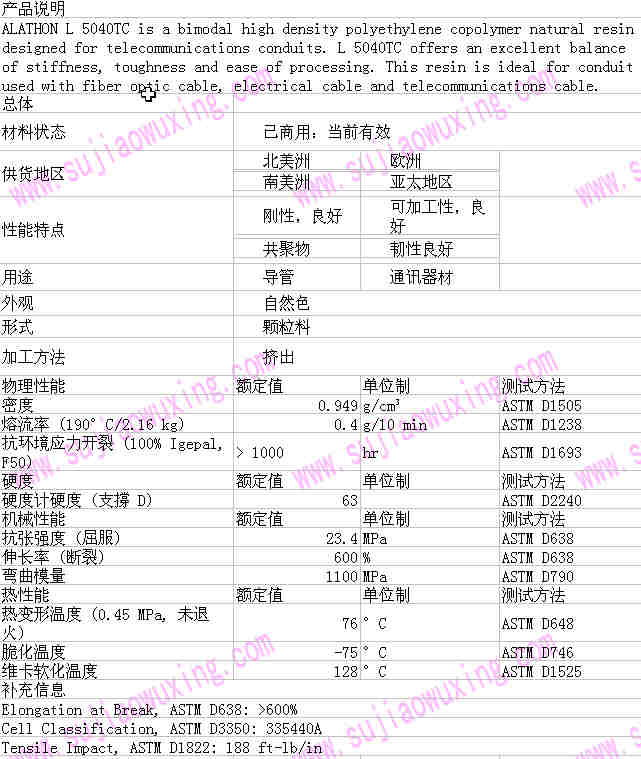 如需了解Alathon PA66-6 L5040TC 物性表更多详情,ROHS(SGS)报告、物质安全资料表(MSDS)、材质证明、UL黄卡等,最新行情报价等可来电咨询:袁小姐13266047972 QQ:767320520