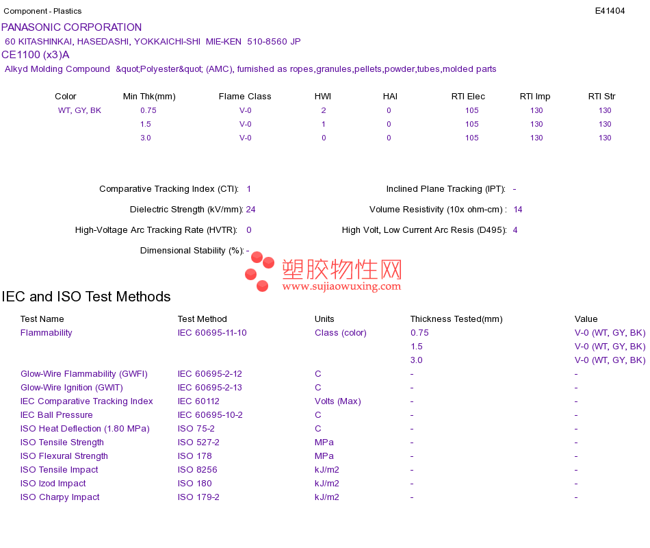 Alkyd Molding Compound "Polyester" (AMC) CE1100 (x3)AUL黄卡资料请登陆会员后查看,如需电子档资料,请联系客服! 赵生:手机13424755533;QQ:27660005