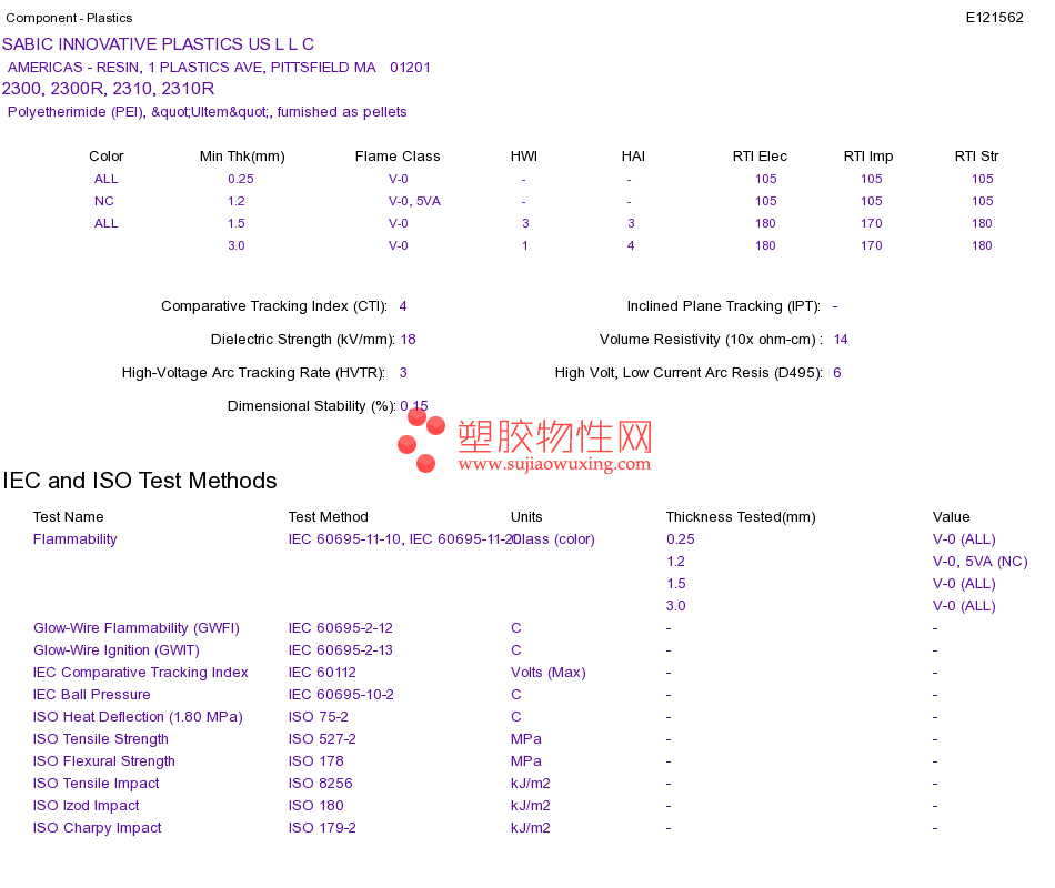 Polyetherimide (PEI) 2300, 2300R, 2310, 2310RUL黄卡资料请登陆会员后查看,如需电子档资料,请联系客服! 赵生:手机13424755533;QQ:27660005