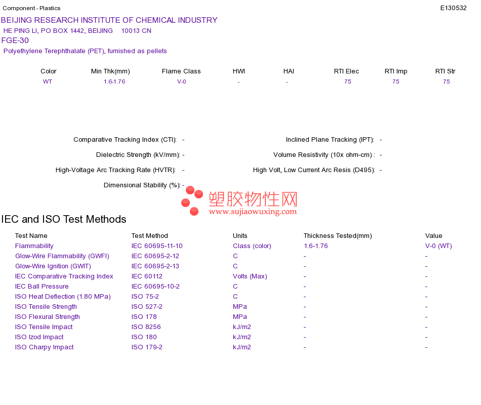 Polyethylene Terephthalate (PET) FGE-30UL黄卡资料请登陆会员后查看,如需电子档资料,请联系客服! 赵生:手机13424755533;QQ:27660005