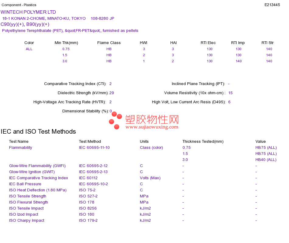 Polyethylene Terephthalate (PET) C90(yy)(+), B90(yy)(+)UL黄卡资料请登陆会员后查看,如需电子档资料,请联系客服! 赵生:手机13424755533;QQ:27660005