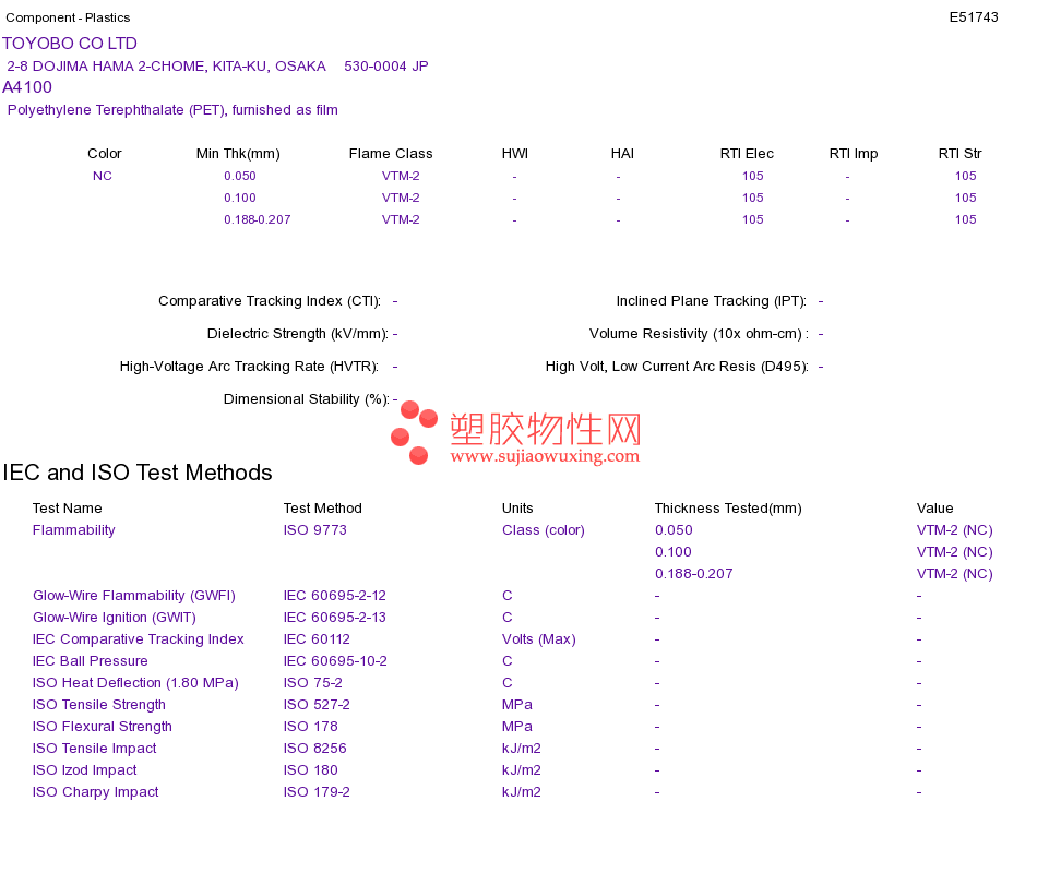 Polyethylene Terephthalate (PET) A4100UL黄卡资料请登陆会员后查看,如需电子档资料,请联系客服! 赵生:手机13424755533;QQ:27660005