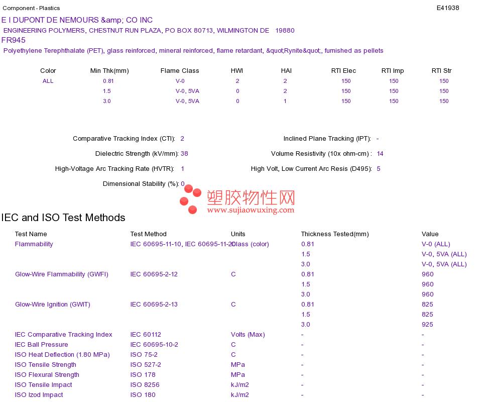 Polyethylene Terephthalate (PET) FR945UL黄卡资料请登陆会员后查看,如需电子档资料,请联系客服! 赵生:手机13424755533;QQ:27660005