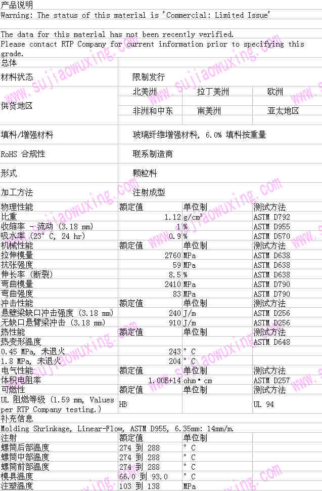 RTP PA66-6 Compounds 200.6 H 物性表资料详细内容如图