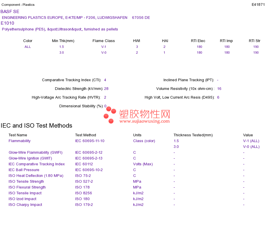 Polyethersulphone (PES) E1010UL黄卡资料请登陆会员后查看,如需电子档资料,请联系客服! 赵生:手机13424755533;QQ:27660005