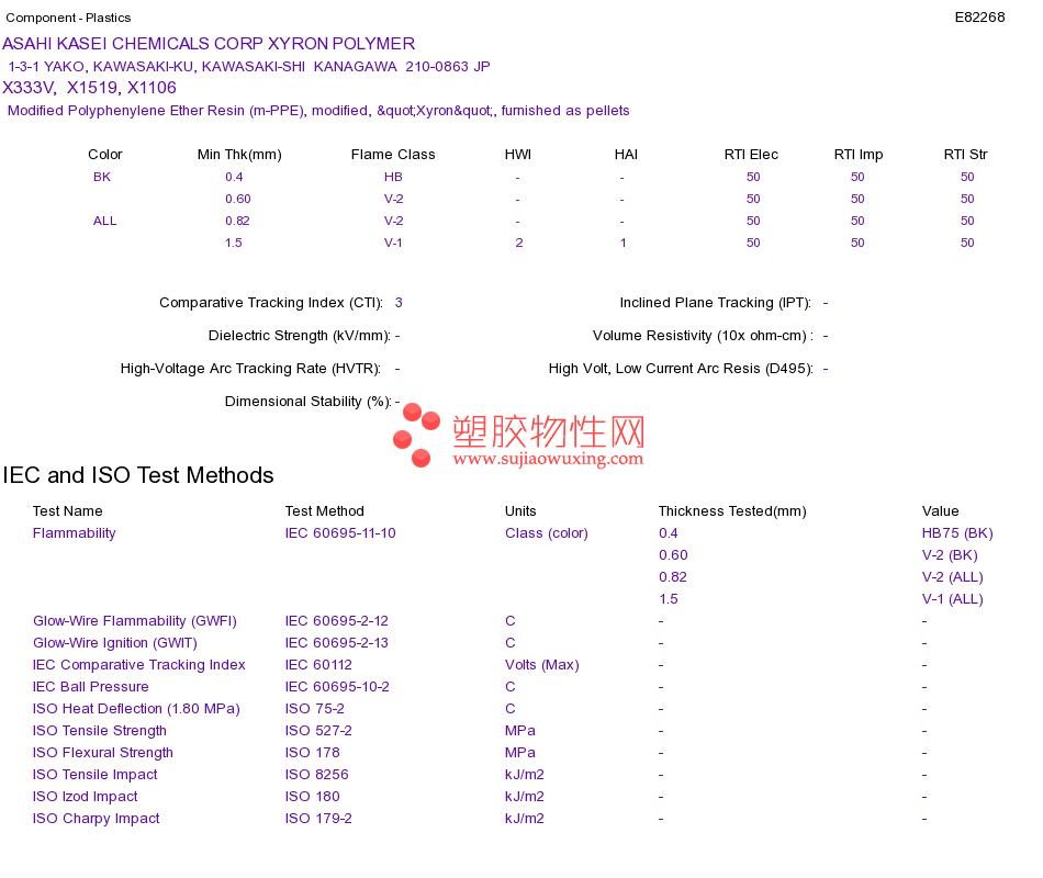 Modified Polyphenylene Ether Resin (m-PPE) X333V, X1519, X1106UL黄卡资料请登陆会员后查看,如需电子档资料,请联系客服! 赵生:手机13424755533;QQ:27660005
