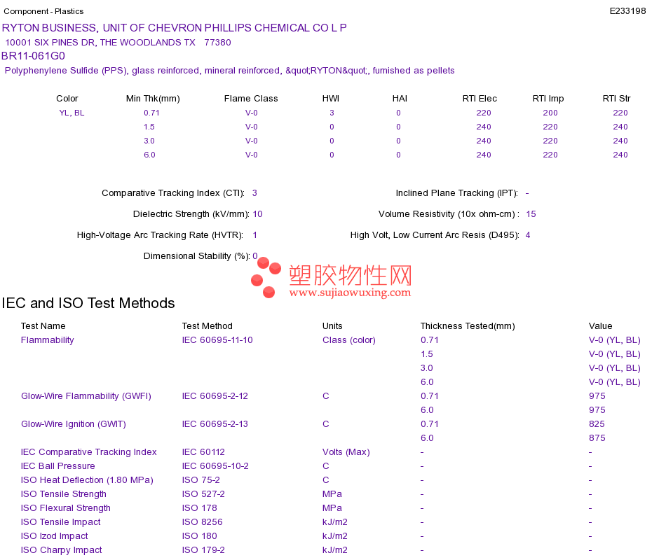 Polyphenylene Sulfide (PPS) BR11-061G0UL黄卡资料请登陆会员后查看,如需电子档资料,请联系客服! 赵生:手机13424755533;QQ:27660005