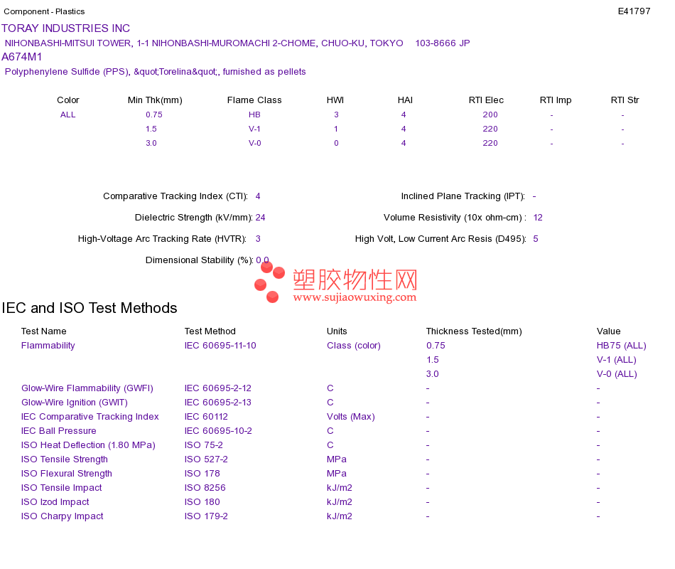 Polyphenylene Sulfide (PPS) A674M1UL黄卡资料请登陆会员后查看,如需电子档资料,请联系客服! 赵生:手机13424755533;QQ:27660005