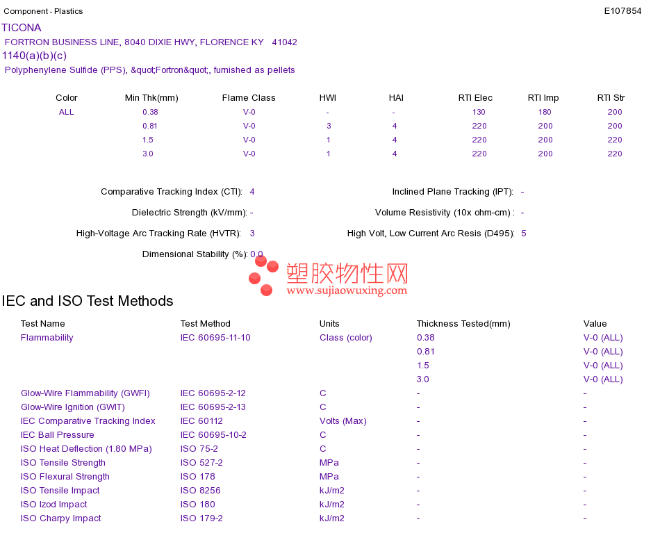 Polyphenylene Sulfide (PPS) 1140(a)(b)(c)UL黄卡资料请登陆会员后查看,如需电子档资料,请联系客服! 赵生:手机13424755533;QQ:27660005