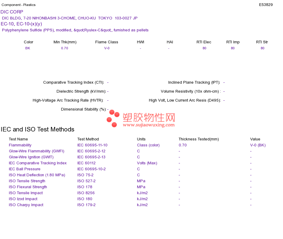 Polyphenylene Sulfide (PPS) EC-10, EC-10-(x)(y)UL黄卡资料请登陆会员后查看,如需电子档资料,请联系客服! 赵生:手机13424755533;QQ:27660005