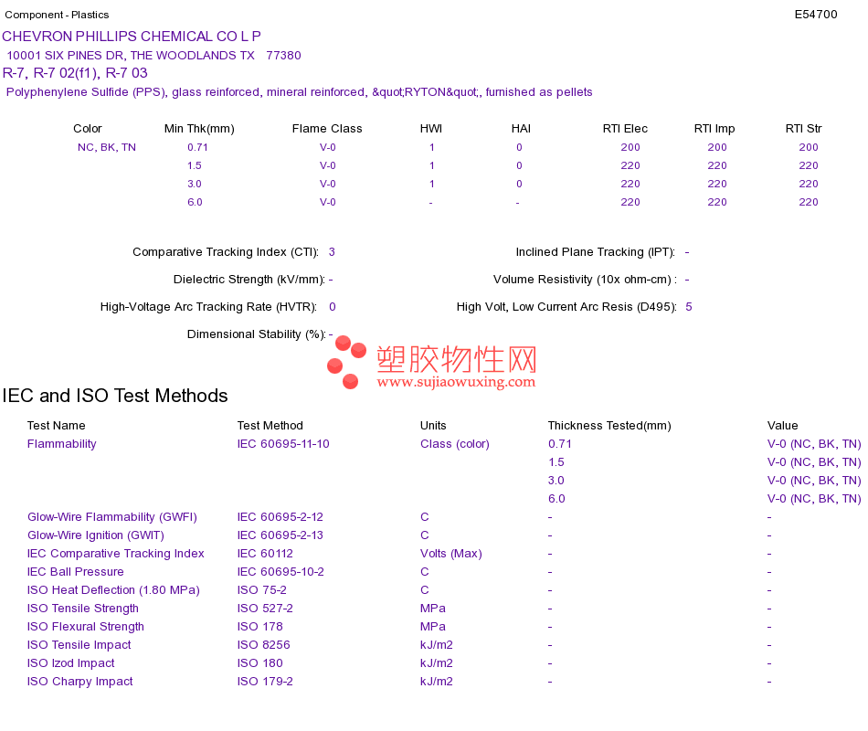 Polyphenylene Sulfide (PPS) R-7, R-7 02(f1), R-7 03 UL黄卡