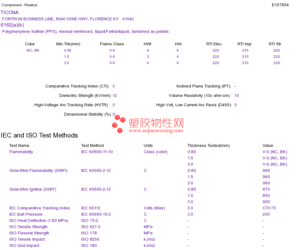 Polyphenylene Sulfide (PPS) 6162(a)(b)UL黄卡资料请登陆会员后查看,如需电子档资料,请联系客服! 赵生:手机13424755533;QQ:27660005