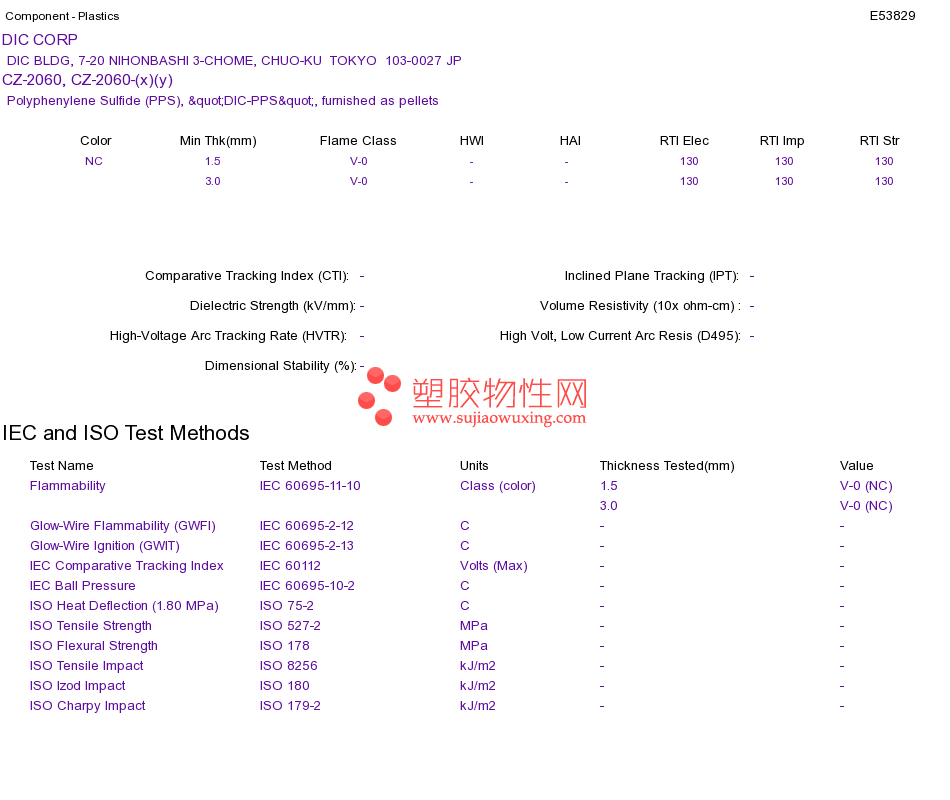 Polyphenylene Sulfide (PPS) CZ-2060, CZ-2060-(x)(y)UL黄卡资料请登陆会员后查看,如需电子档资料,请联系客服! 赵生:手机13424755533;QQ:27660005