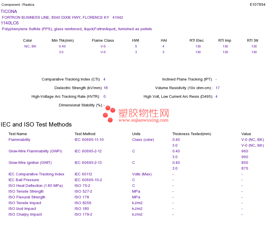 Polyphenylene Sulfide (PPS) 1140LC6UL黄卡资料请登陆会员后查看,如需电子档资料,请联系客服! 赵生:手机13424755533;QQ:27660005