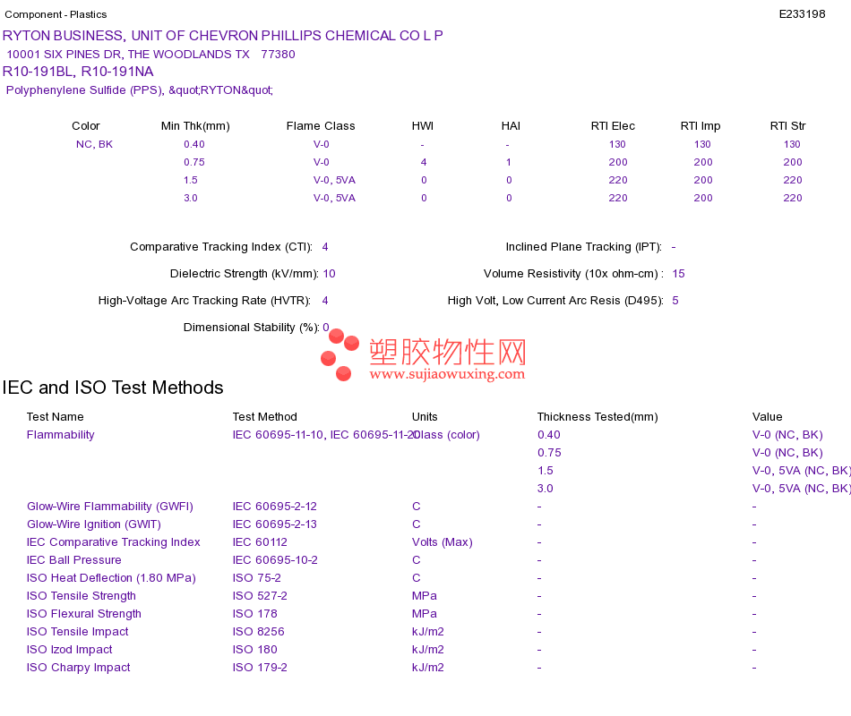 Polyphenylene Sulfide (PPS) R10-191BL, R10-191NAUL黄卡资料请登陆会员后查看,如需电子档资料,请联系客服! 赵生:手机13424755533;QQ:27660005