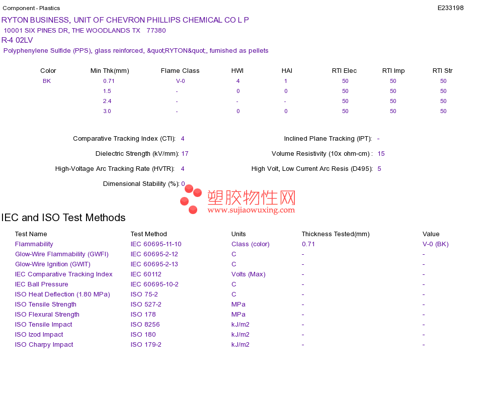 Polyphenylene Sulfide (PPS) R-4 02LVUL黄卡资料请登陆会员后查看,如需电子档资料,请联系客服! 赵生:手机13424755533;QQ:27660005