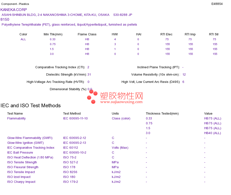Polyethylene Terephthalate (PET) 8150UL黄卡资料请登陆会员后查看,如需电子档资料,请联系客服! 赵生:手机13424755533;QQ:27660005