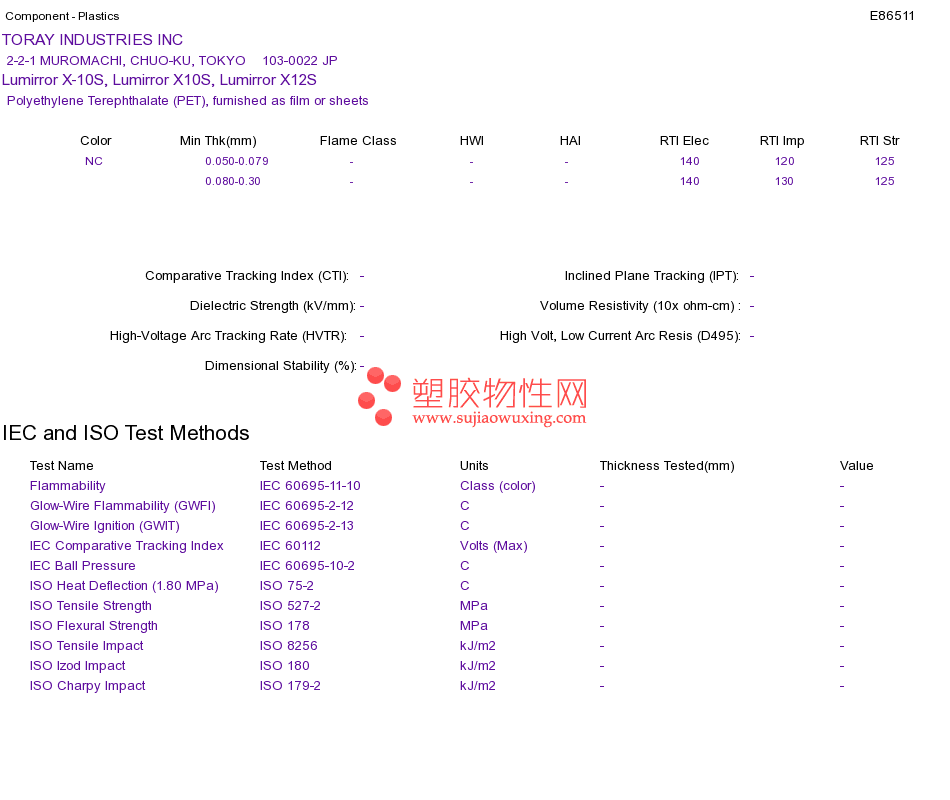 Polyethylene Terephthalate (PET) Lumirror X-10S, Lumirror X10S, Lumirror X12SUL黄卡资料请登陆会员后查看,如需电子档资料,请联系客服! 赵生:手机13424755533;QQ:27660005