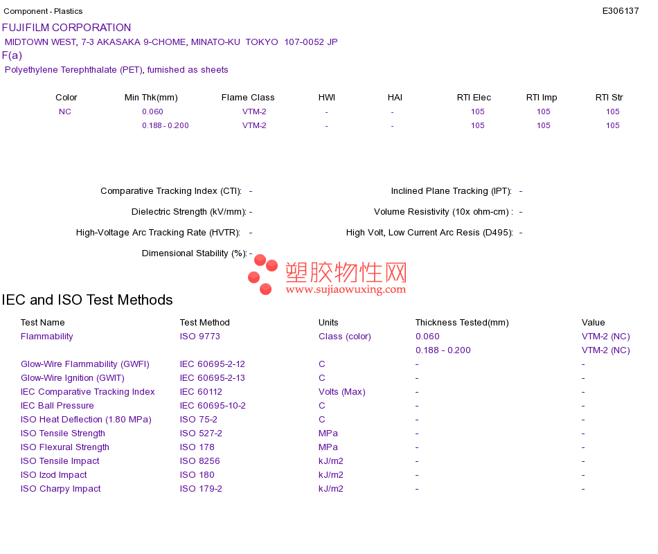 Polyethylene Terephthalate (PET) F(a)UL黄卡资料请登陆会员后查看,如需电子档资料,请联系客服! 赵生:手机13424755533;QQ:27660005