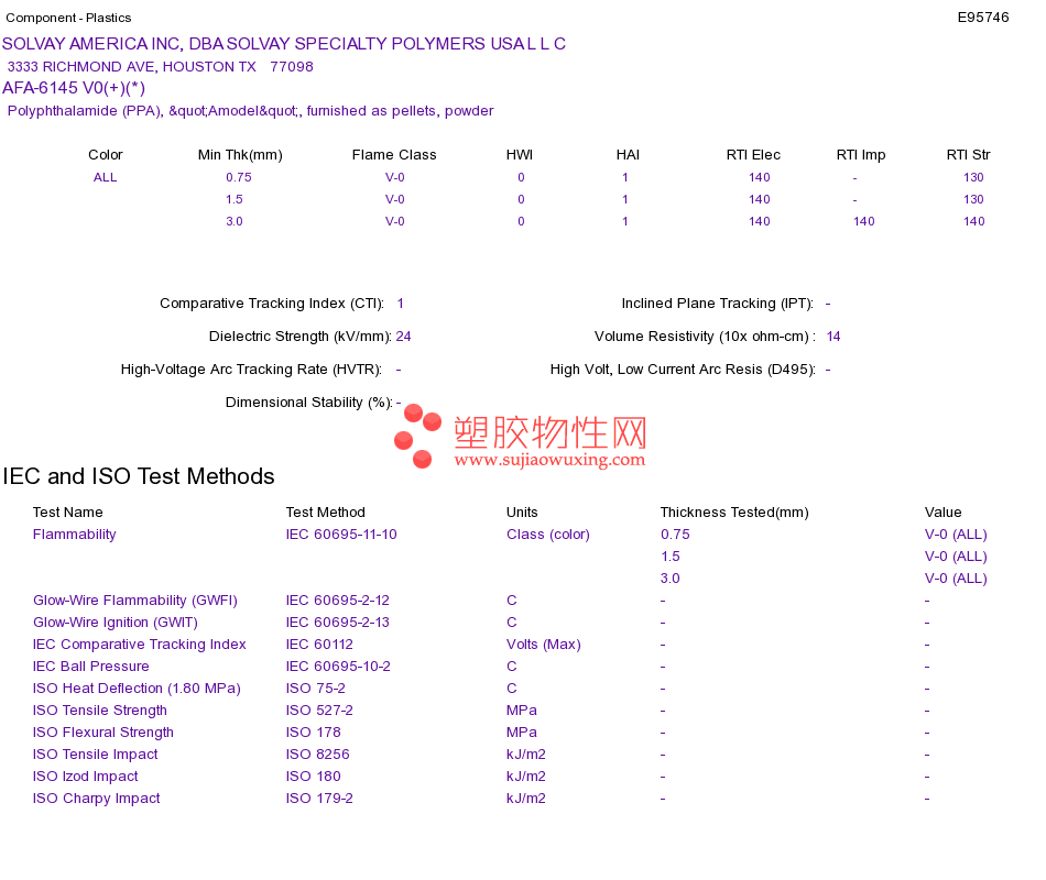 Polyphthalamide (PPA) AFA-6145 V0(+)(*)UL黄卡资料请登陆会员后查看,如需电子档资料,请联系客服! 赵生:手机13424755533;QQ:27660005