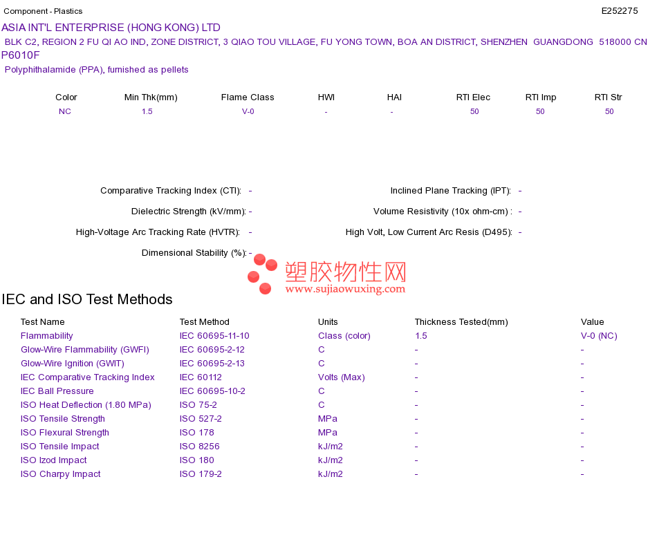 Polyphithalamide (PPA) P6010FUL黄卡资料请登陆会员后查看,如需电子档资料,请联系客服! 赵生:手机13424755533;QQ:27660005