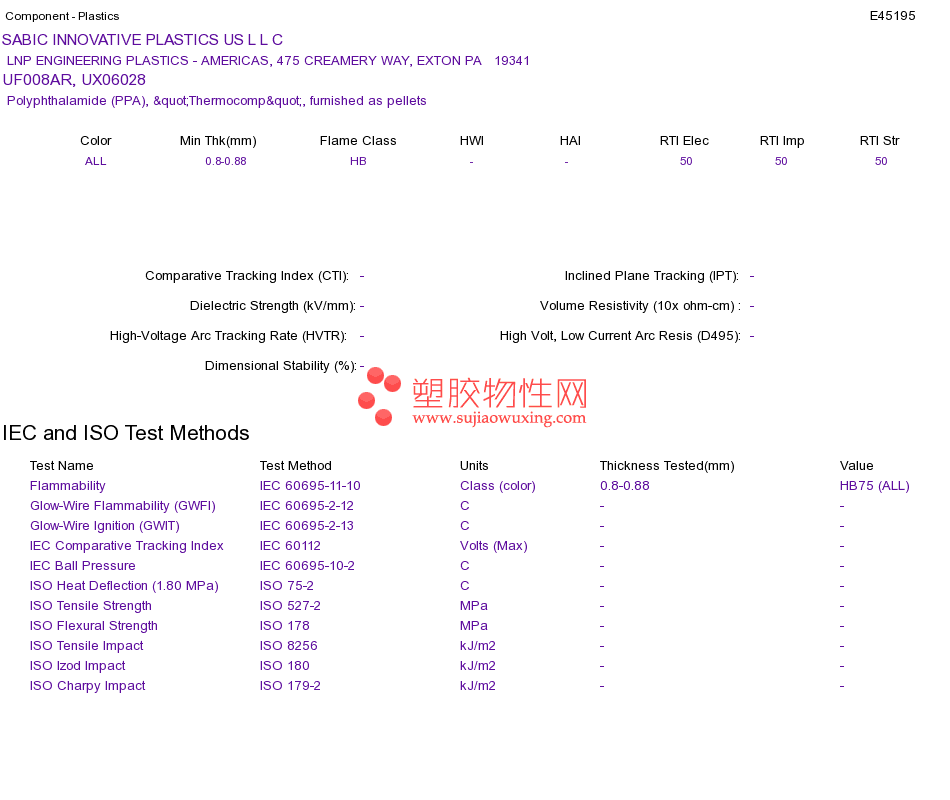 Polyphthalamide (PPA) UF008AR, UX06028UL黄卡资料请登陆会员后查看,如需电子档资料,请联系客服! 赵生:手机13424755533;QQ:27660005