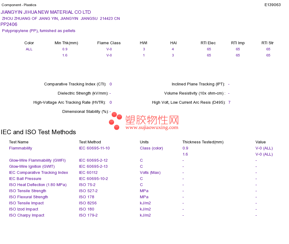 Polypropylene (PP) PP2406UL黄卡资料请登陆会员后查看,如需电子档资料,请联系客服! 赵生:手机13424755533;QQ:27660005