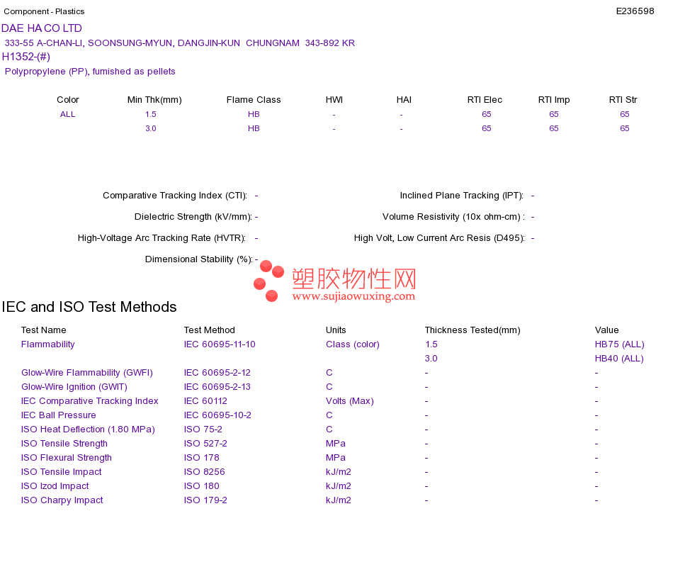 Polypropylene (PP) H1352-(#)UL黄卡资料请登陆会员后查看,如需电子档资料,请联系客服! 赵生:手机13424755533;QQ:27660005