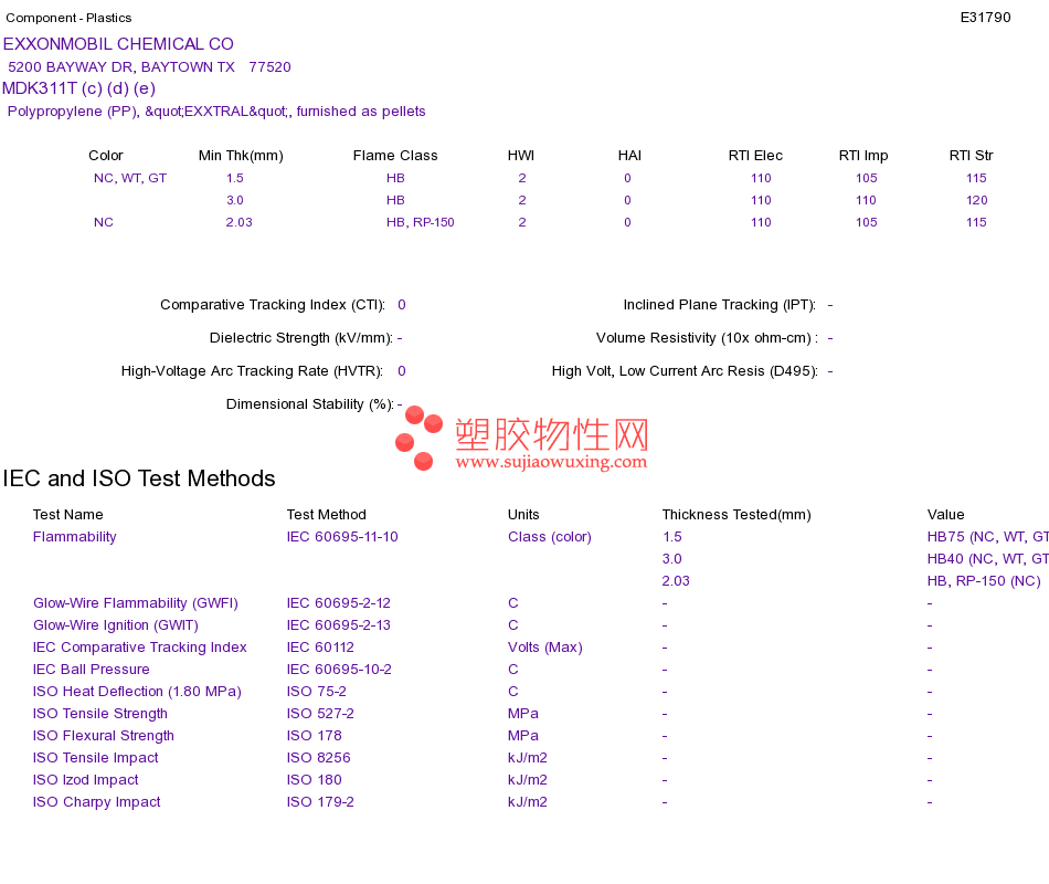 Polypropylene (PP) MDK311T (c) (d) (e) UL黄卡