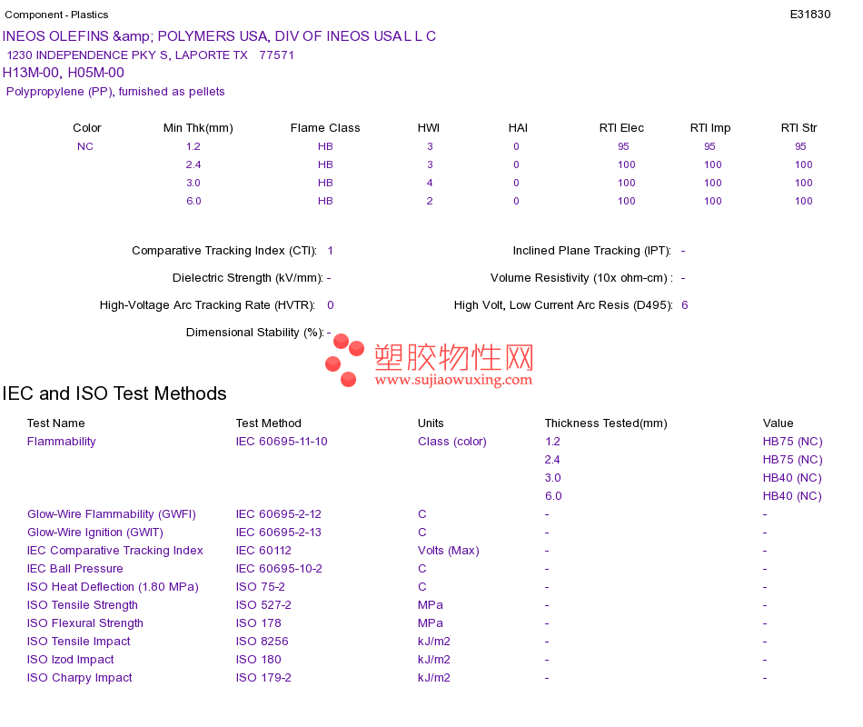 Polypropylene (PP) H13M-00, H05M-00UL黄卡资料请登陆会员后查看,如需电子档资料,请联系客服! 赵生:手机13424755533;QQ:27660005