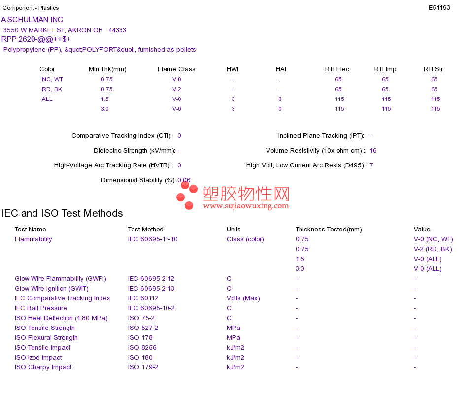 Polypropylene (PP) RPP 2620-@@++$+UL黄卡资料请登陆会员后查看,如需电子档资料,请联系客服! 赵生:手机13424755533;QQ:27660005
