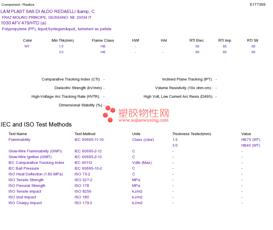 Polypropylene (PP) 1030 AFV 479/HTD (a)UL黄卡资料请登陆会员后查看,如需电子档资料,请联系客服! 赵生:手机13424755533;QQ:27660005